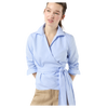 This wrap style top is the perfect way to elevate a classic blouse! Pair with a classic denim jean to complete your look.