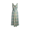 Midi, paneled detail, box-pleat at front, v-neck, v-back, sleeveless