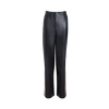 Tapered, high waisted, corset-inspired seaming at waist, partially lined, leather, front slash pockets, center front hidden zipper with hook and bar