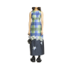 Plaid, panelled maxi dress, embroidered hem