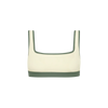 Square neckline, contrasting bind, under bust support, back v-neckline, branded clip