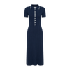 Knitted midi dress, collared neckline with buttons to close, contrasting trimming, subtle a-line silhouette