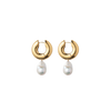 14k gold plated over brass hoops, 14k gold filled findings, resin pearls